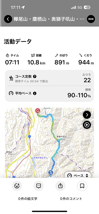 り、今回のコースへ変更になった。お陰様でそこそこのハードさと青空の下に紅葉を楽しむことができた。