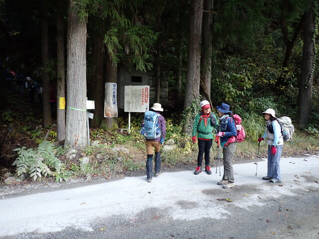 る。その手前が宿の岩登山口であり、また路肩が広くなっていてダンプカーの通行に支障がない形で車を停めることができる。