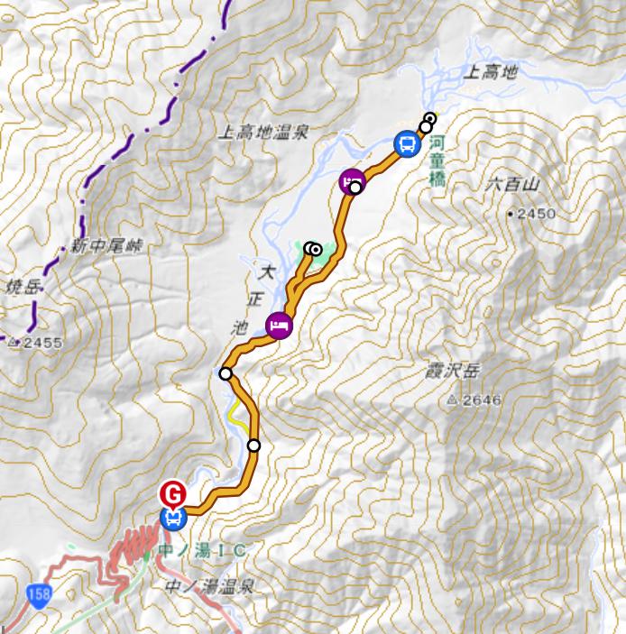 〇集合場所5:30-(福光IC-東海北陸道-飛騨清見IC)-沢渡バスターミナル8:10(バス発8:46)-中の湯バス停9:00-大正池ホテル10:15~10:25-田代池10:50-上高地バスターミナル11:40-河童橋11:50~12:30(昼食)-上高地バスターミナル12:35-大正池ホテル13:30-中の湯バス停14:30(バス発15:05)-沢渡バスターミナル15:20-(飛騨清見IC-東海北陸道-福光IC)-集合場所18:20