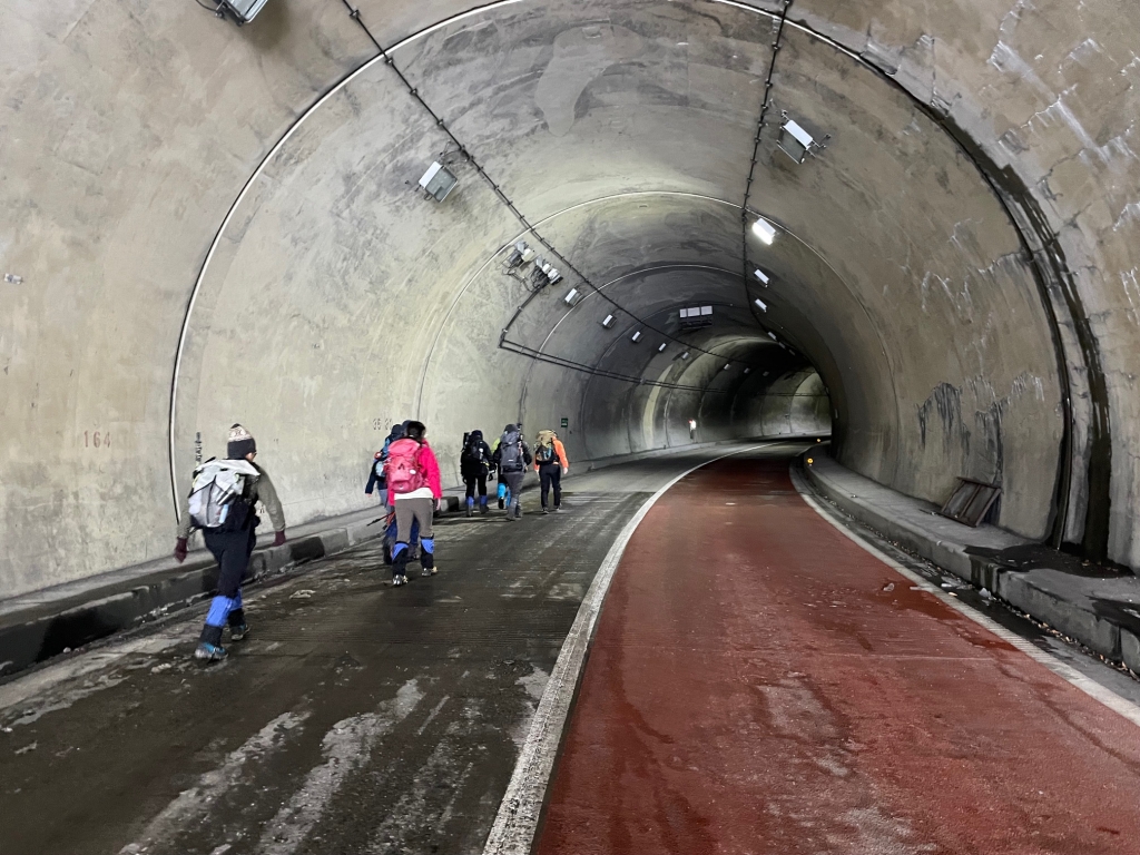 ⑥上高地トンネルには照明がありません。真っ暗です(涙)。ヘッドライトを頼りに暗闇の中を進みます。