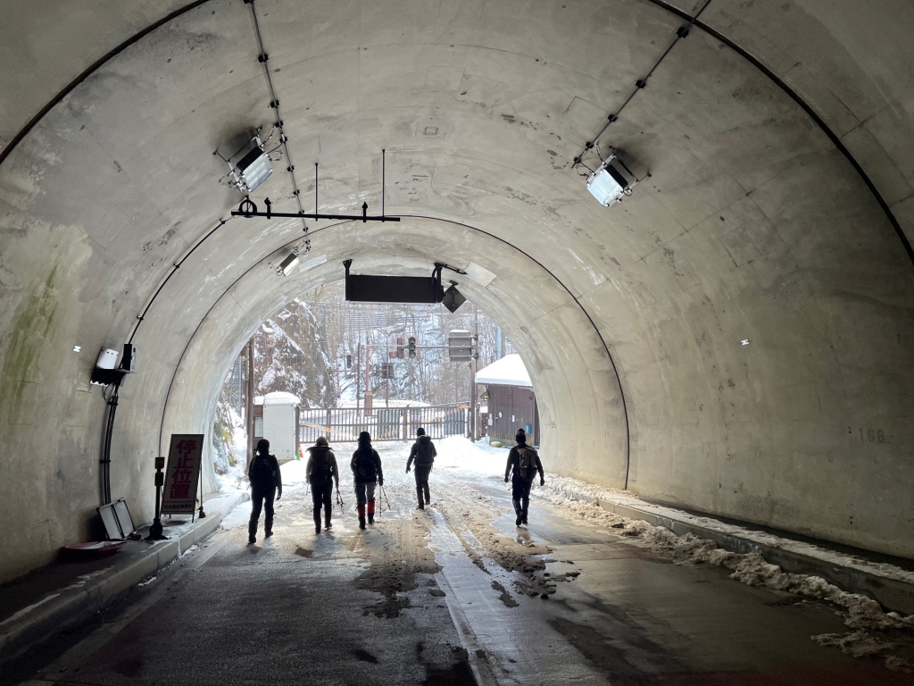 ③釜トンネル(長さ1,310m)の入口です。いよいよ上高地散策が始まります!