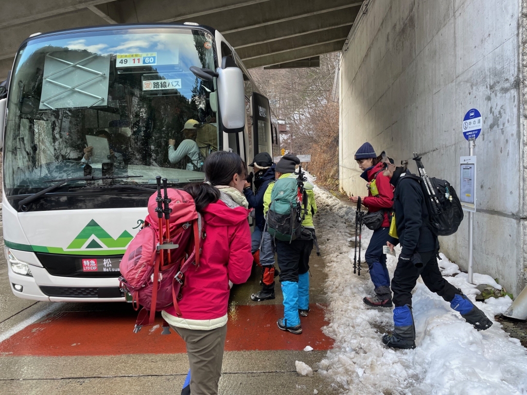 ㉝中の湯バス停から、特急バスで沢渡バスターミナルに向かいます。楽しい初冬の上高地散策でした!