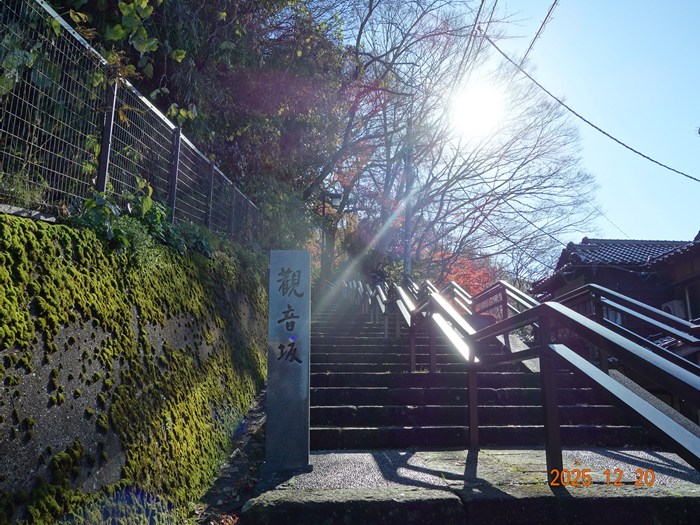11.観音院に向かう階段を登る(真言宗のお寺。本尊は金沢の開拓者と言われる「芋掘り藤五郎」が十一面観音像を彫りた像)
