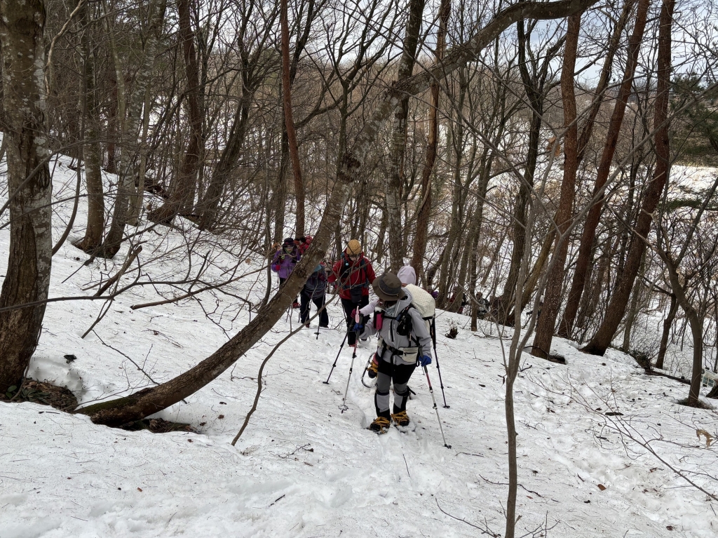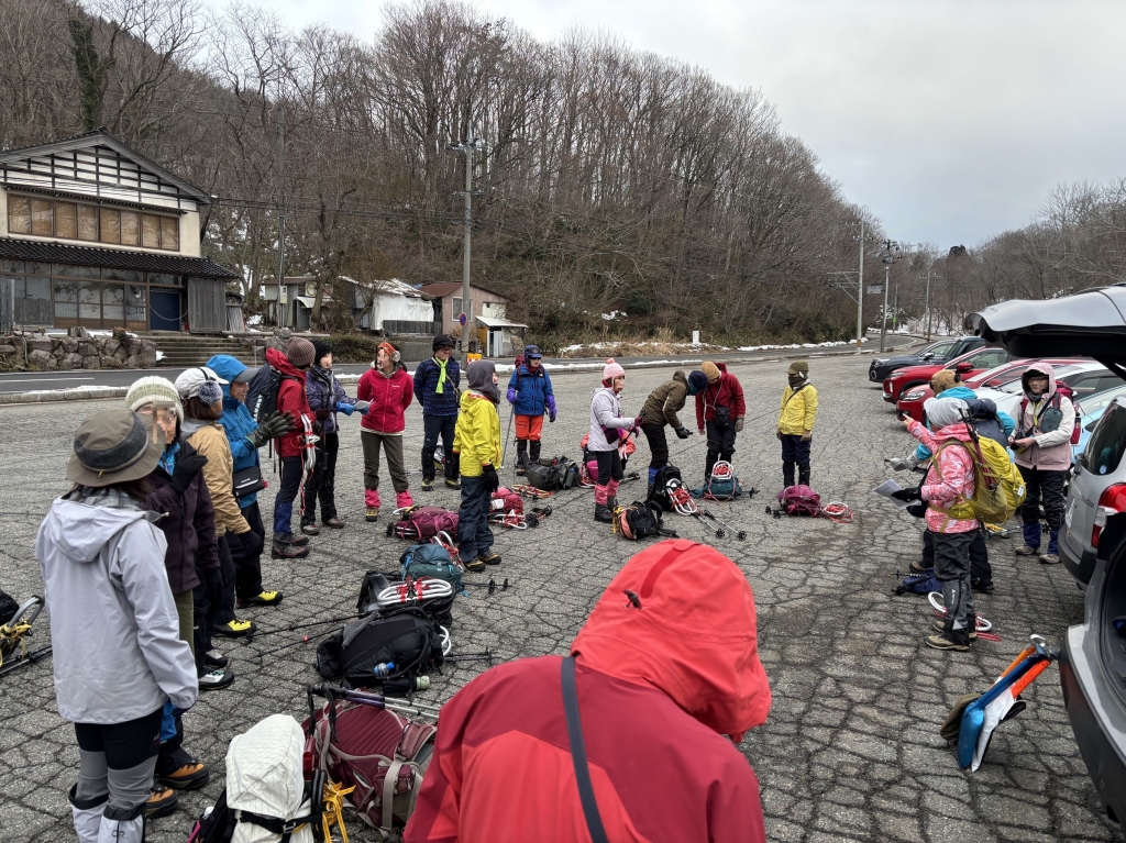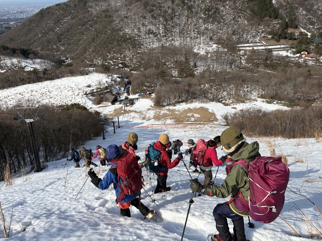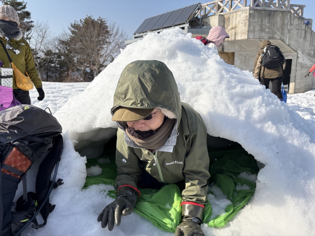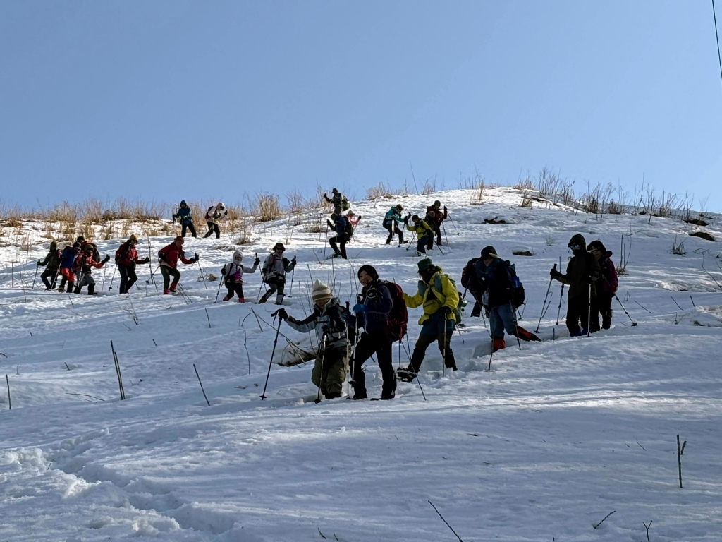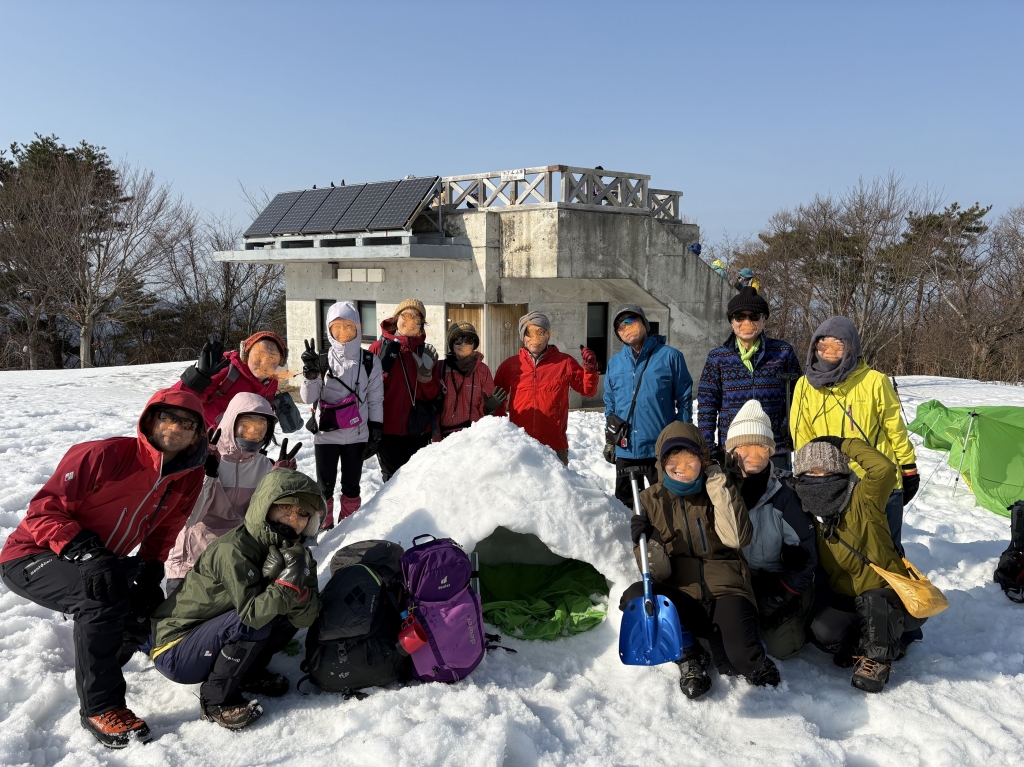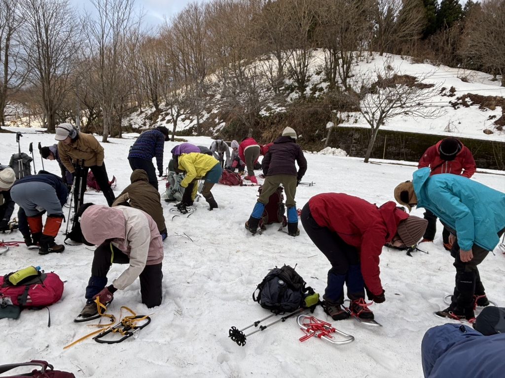 《活動距離》2.4km《累積標高差》上り:204m、下り:204m《活動時間》5時間(昼食、休憩含む) (実績)07:50 集合・共同装備調整 08:15 ワカン装着、歩行練習(緑地広場) 08:45 上り練習 → 10:00 キゴ山山頂 ツエルトビバーク・雪洞作り体験 ぜんざい昼食準備 12:20 下り練習(スキー場斜面) → 13:00 スキー場リフト乗り場 13:15 駐車場着、装備チェック、意見交換、13:30 解散