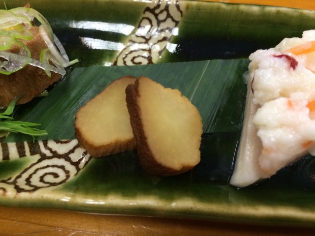 ハス蒸しにうなぎとサワラの切り身添え