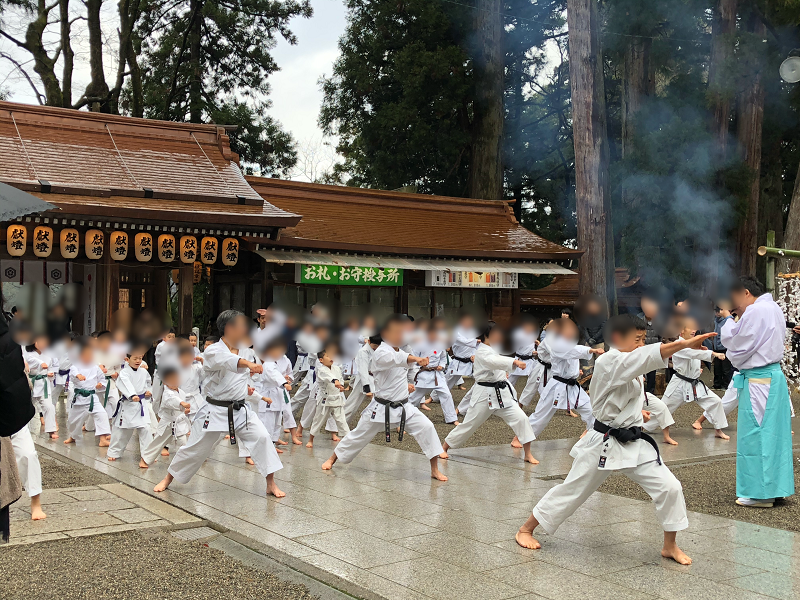 雪のない正月を迎えた令和2年の例会は恒例の白山比咩神社初詣で口火を切った。この時期らしい寒さの中、社殿前で今年も披露された空手の奉納稽古に気を引き締める。白山比咩神社のご神体とされる白山は、山と自然を愛する私たちにとっても特別な存在であることは間違いない。