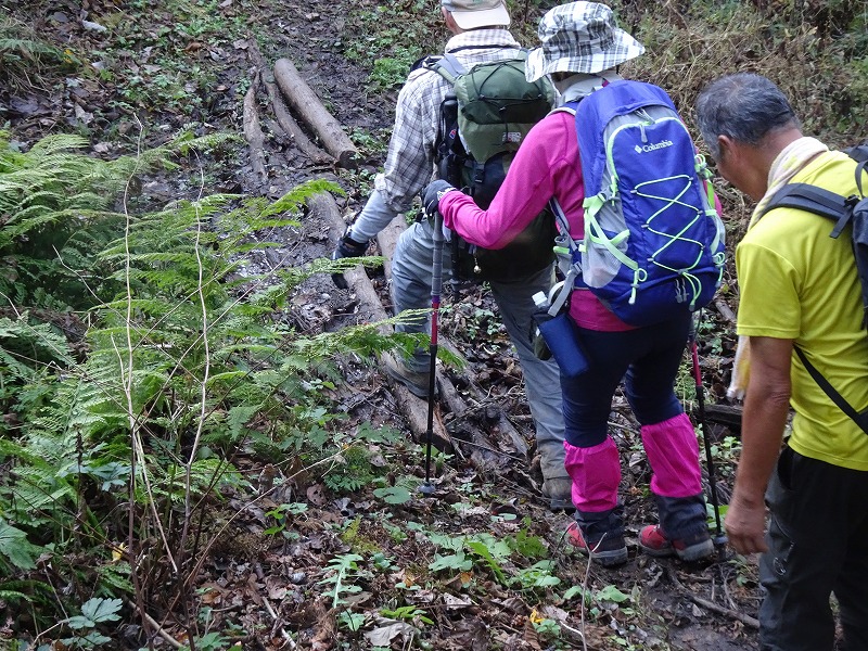 ヌルヌルの丸太橋、疲れた足にはきついですね、気をつけて渡りましょう