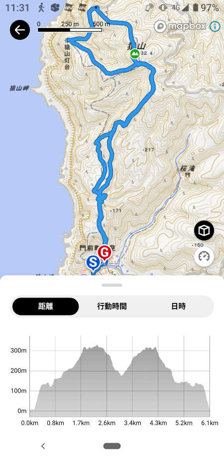 タイム05:25 距離6.1km 上り618m 下り617m