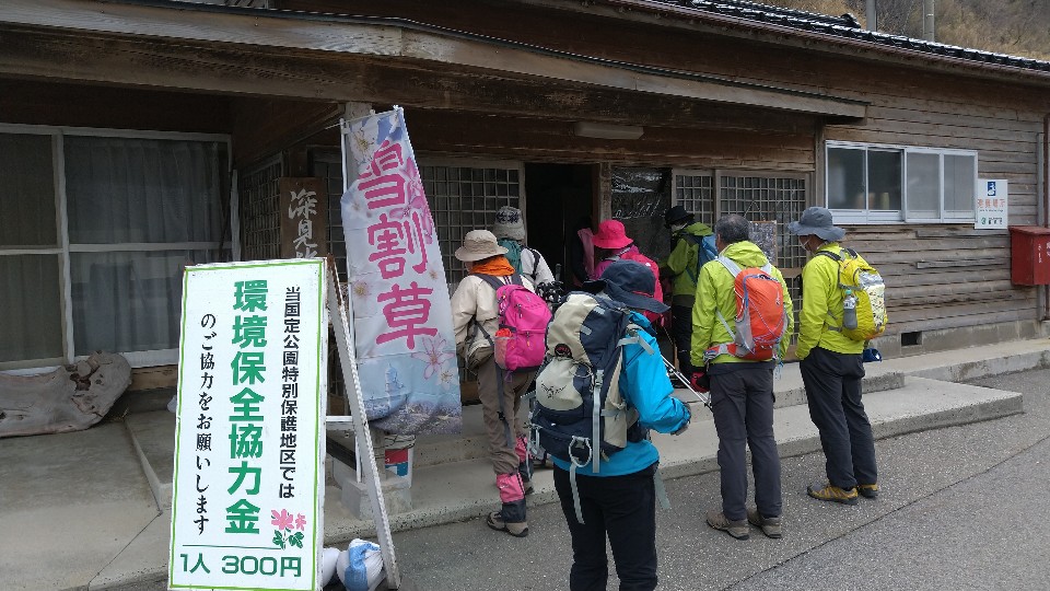 登山口入り口で協力金300円を支払う