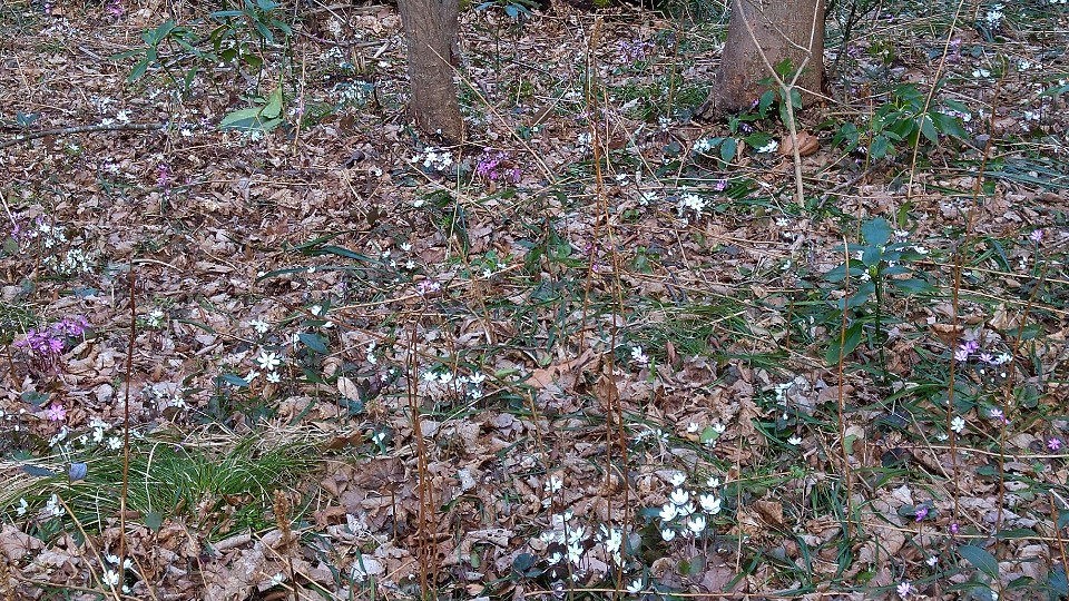 山いっぱいの雪割草を見る