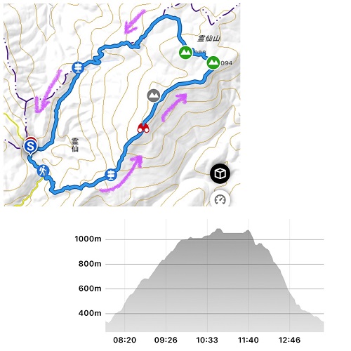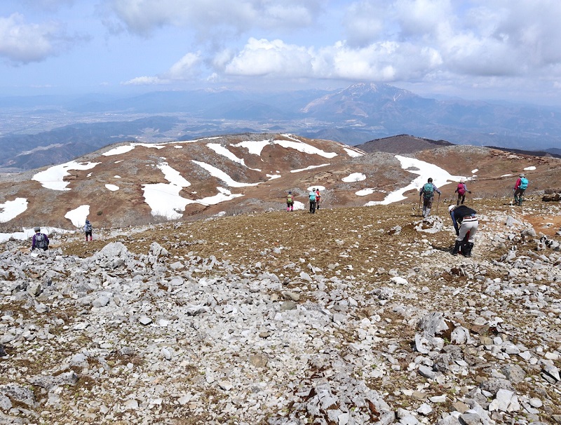 集合・出発 5:00 → 金沢西IC → 彦根IC → 今畑登山口P着・登山開始 7:45 → 笹峠9:00 → 近江展望台 9:50 → 霊仙山最高地点 10:50 →風を避けられる場所で昼食 11:00~11:30 → 霊仙山山頂 11:40 → お虎ヶ池 12:00 → 汗拭き峠 13:00 → 今畑登山口P着 13:50