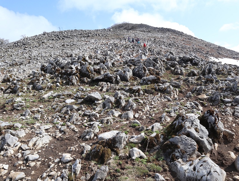 見上げる斜面は無数の石灰岩が埋め尽くし、圧巻!