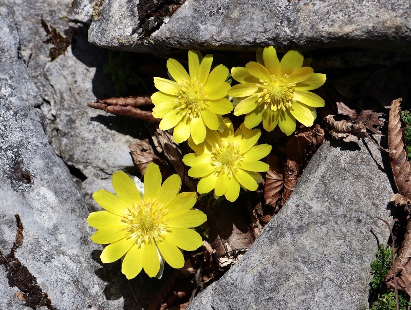 石灰岩の隙間に明るく、やや光沢を持つ黄花が顔を出す様はとても可愛い