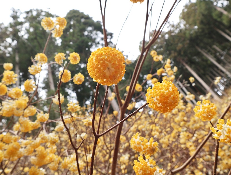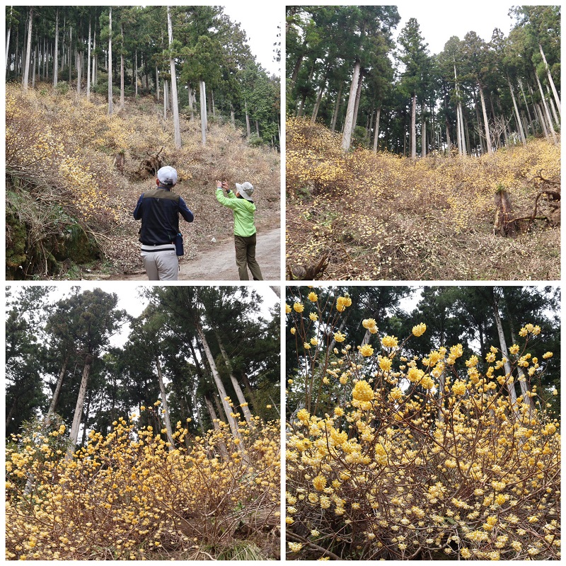 今年は例年にない積雪で花期が遅れた為、例会を2週間延ばして臨んだミツマタ鑑賞。