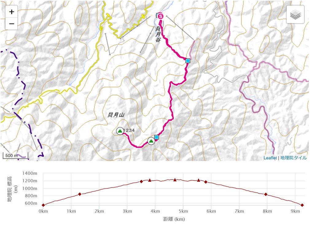 集合場所6:00-揖斐高原P9:00-登山口9:30-小貝月山11:25-貝月山11:50~12:25-小貝月山12:45-登山口14:05-揖斐高原P14:15-集合場所17:30