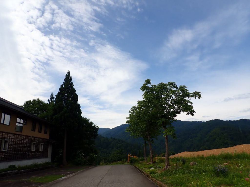 駐車場から。お天気が心配でしたが、青空がのぞいています。