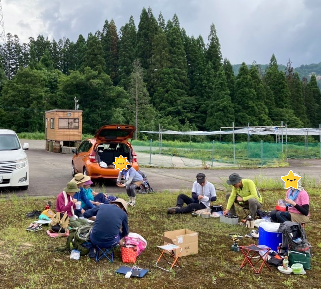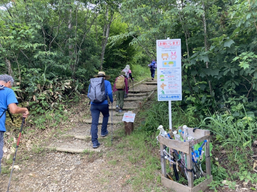 登山にはいろいろな楽しみ方がありますが、山で食べるご飯も楽しみの一つ。普段の例会では、ご飯もそこそこに下山することが多いので、今回は「山飯を楽しもう!」ということで、お昼時間をゆっくりととって、山ランチの時間をメインの例会となりました。頂上そばの白山高山植物園もちょうど開園時期にあり、可愛いお花も楽しんできました。