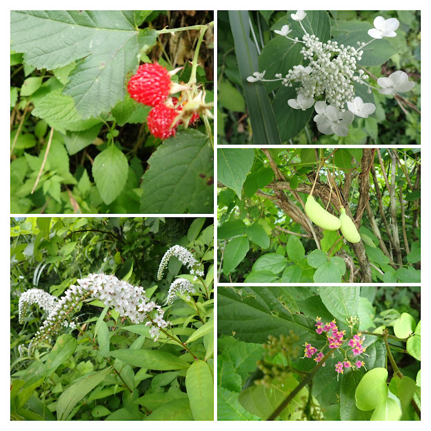 登山道のお花たち。イブキトラノオの群生や、小さなアケビなどが見られました。