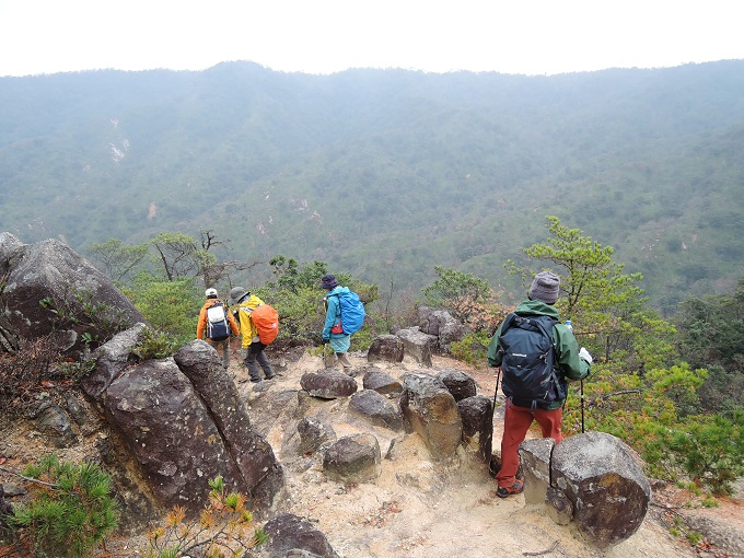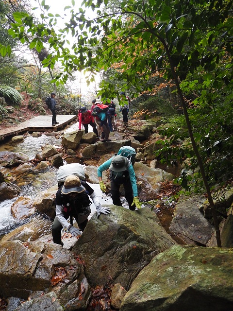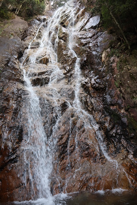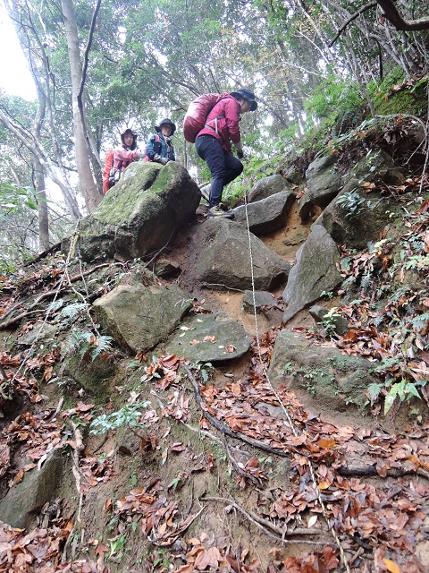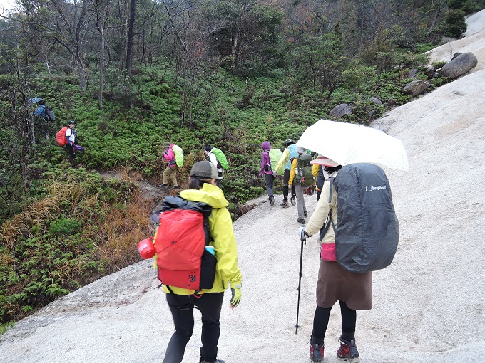 【参加人数】 21名 A健【コースタイム】 集合場所4:50-近江高島駅前第1駐車場7:20-近江高島駅7:41-(電車)-北小松駅7:50- 北小松登山口8:20-楊梅の滝(雌滝~雄滝)8:40~9:00-寒風峠10:10~10:20- 鵜川越11:20-岩阿沙利山11:50~12:20-オウム岩13:20~13:35-岳山13:50- 白坂15:00~15:15-大炊神社16:00ー駐車場16:15-集合場所19:30
