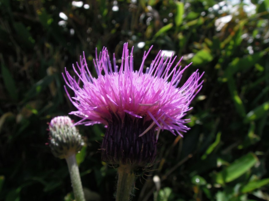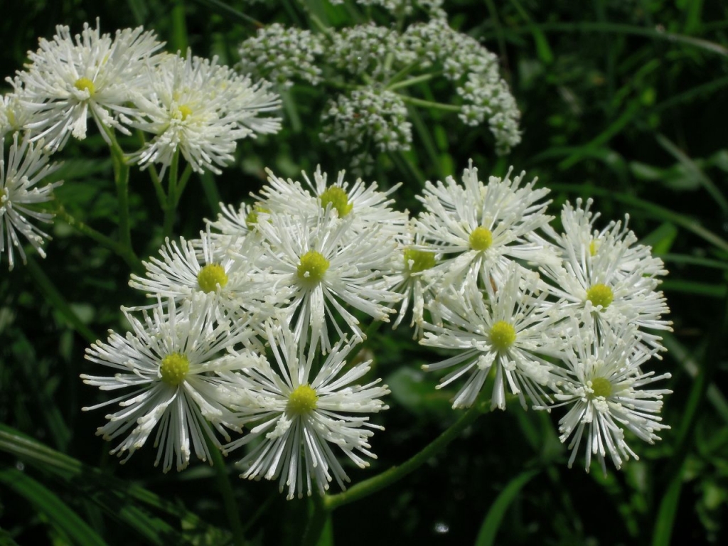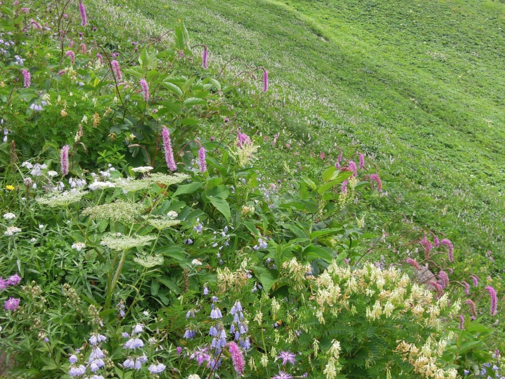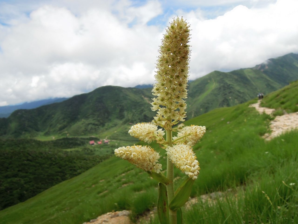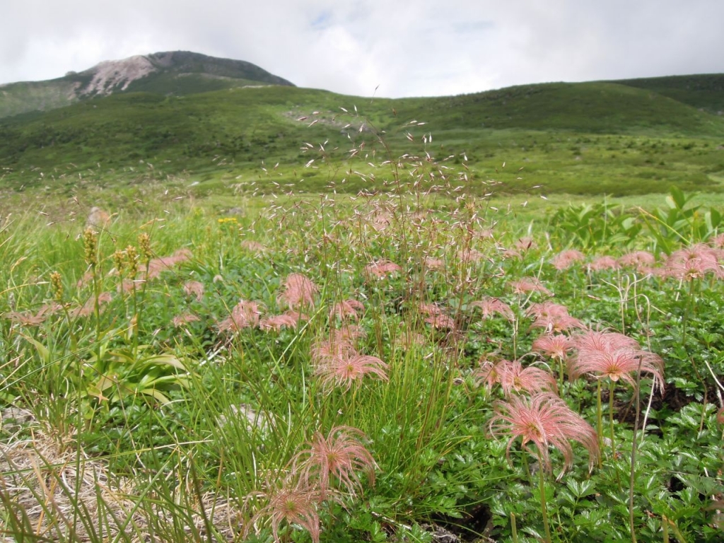 この日の白山は百花繚乱。こちらは「ゆっくり登ろう」がテーマなので、綺麗な花があれば足を止めては写真を撮る。観光新道の上部「馬のたてがみ」はまさに花園状態だ。ハクサンフウロ、シモツケソウ、ヨツバシオガマ、マツムシソウ、アザミなどピンクや紫の花々が咲き誇り、他にもさまざまな花が目を楽しませてくれた。黒ボコ岩の岩陰で昼食を取ったのち、笹がはびこる弥陀ヶ原の木道を歩いた。ササは年々高山植物を駆逐して弥陀ヶ原に広がっていく。ようやく見つけたクロユリは花弁を落としてつややかな緑の実となり、タテヤマリンドウが薄紫の小さな花を開く。エコーラインの南斜面では、カライトソウの赤やキスゲの鮮やかな黄色が風に揺れていた。汗をかいた皮膚にあたる風にいくぶん冷気の粒子を感じた。空には絹雲も現われて、白山は早くも秋の気配が忍び寄っていた。