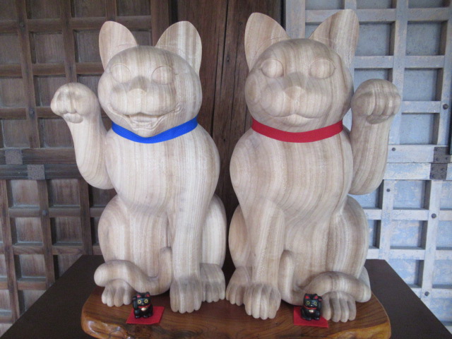 寺の黒猫伝承にちなんだ「なで猫」。左が金運、右が招福。もちろん両方撫でました。