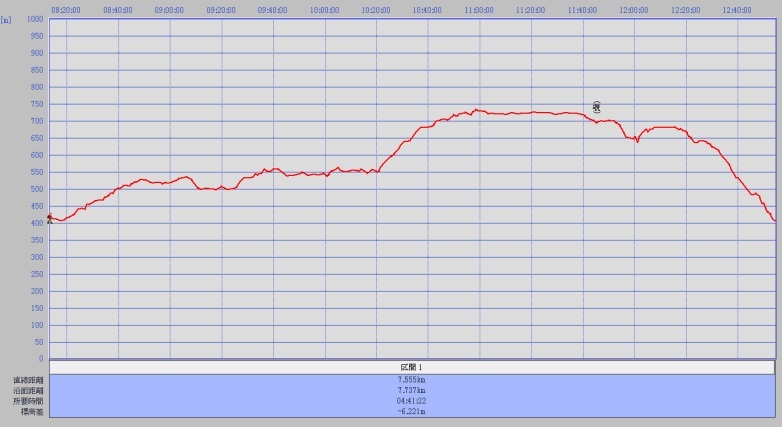 平面距離 7.6km沿面距離 7.7km記録時間 04:41:22