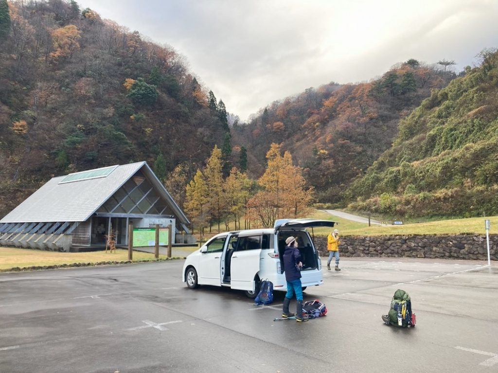 集合場所から車で出発すると小雨に変わり、5分くらいで雨は上がりました。登山中も雨は全く降らず、後半は少し青空も見えてきました。