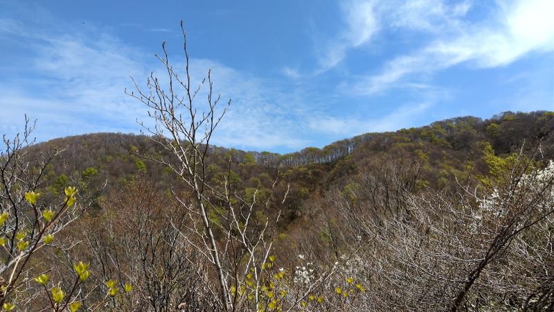 下山途中に見上げた前山と富士写ヶ岳