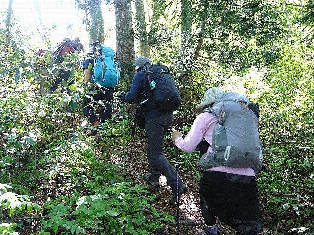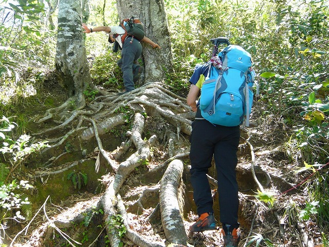 私たちは快晴の山行に臨んだ。山道はほぼ木の根が足場となっており、人工の足場が無く、