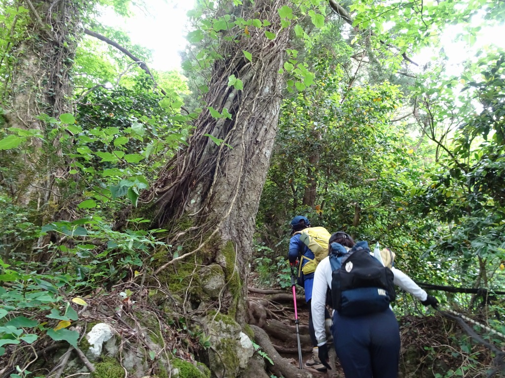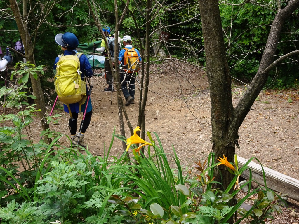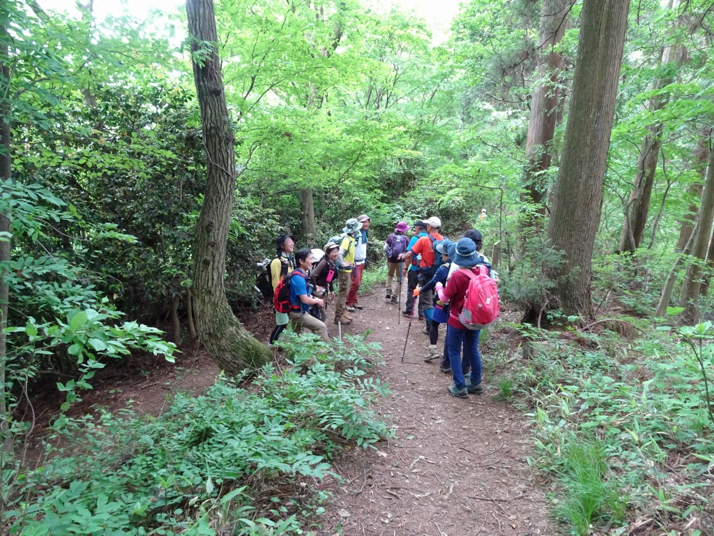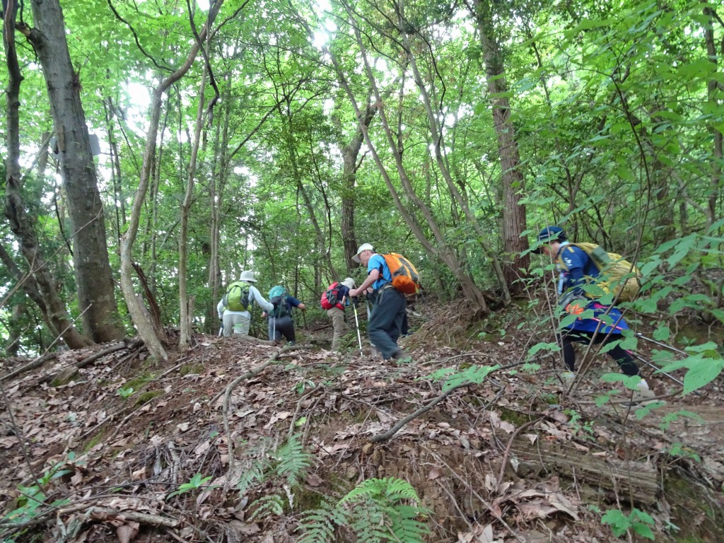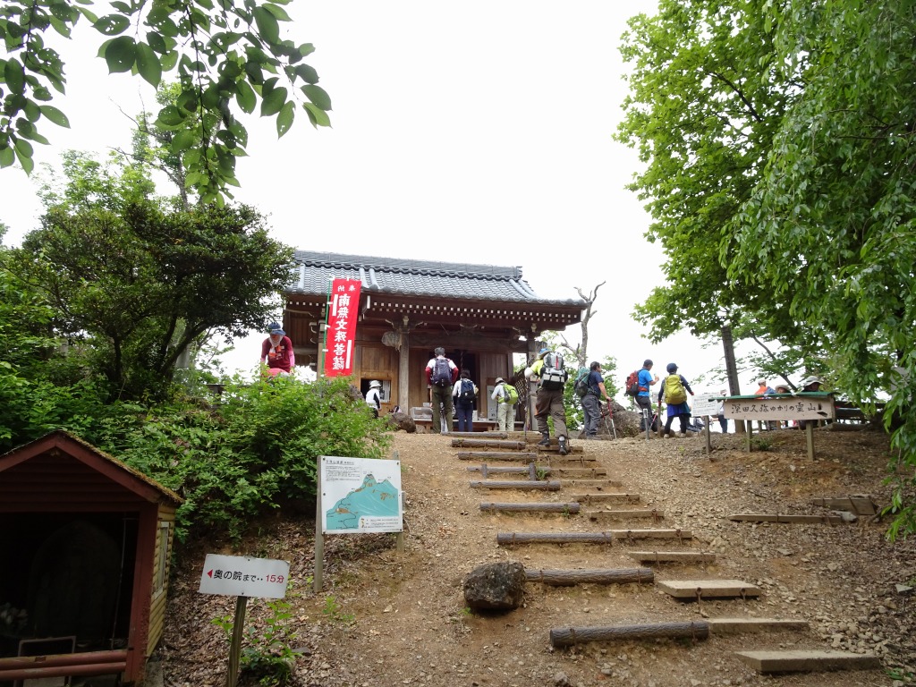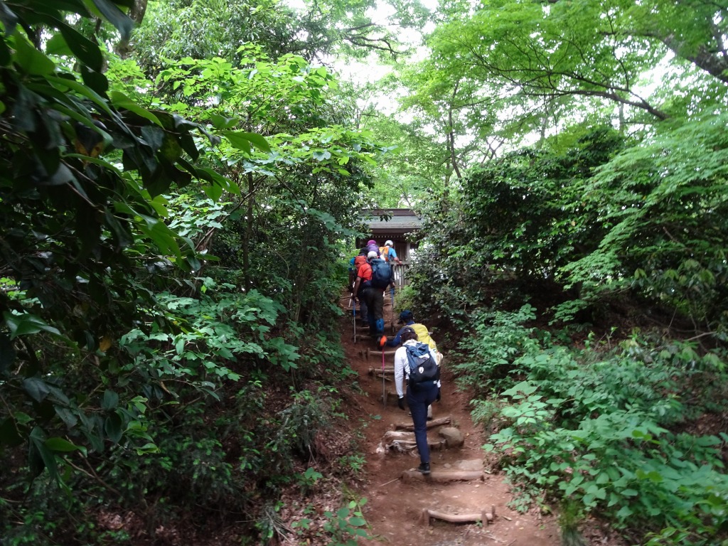 ---------------------------------------------------------------- 地元の解説には「越前五山の一つとして知られている文殊山は、養老元年に泰澄大師が開山して以来、信仰の山として親しまれている。山上には三つの峯があり、北から室堂(小文殊)、大文殊(本道)、奥の院(大汝)と呼ばれている」とありました、「親しまれている」とありますように地元の方が多い感じで、登りも下りの多くの人でにぎわっていました、曇り空となり暑くもなく寒くもなくさわやかな風が吹く登山道歩きでした