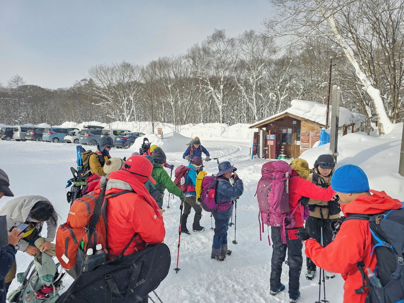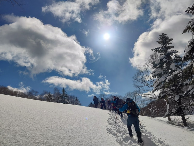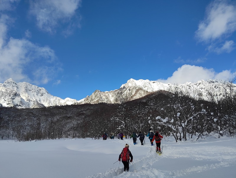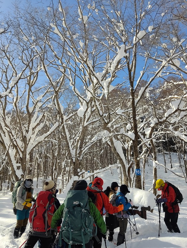 前日までの大雪予報により、例会が実施されるかどうか心配でしたが、当日長野市は晴れ!青空のもと17名での山行となりました。
