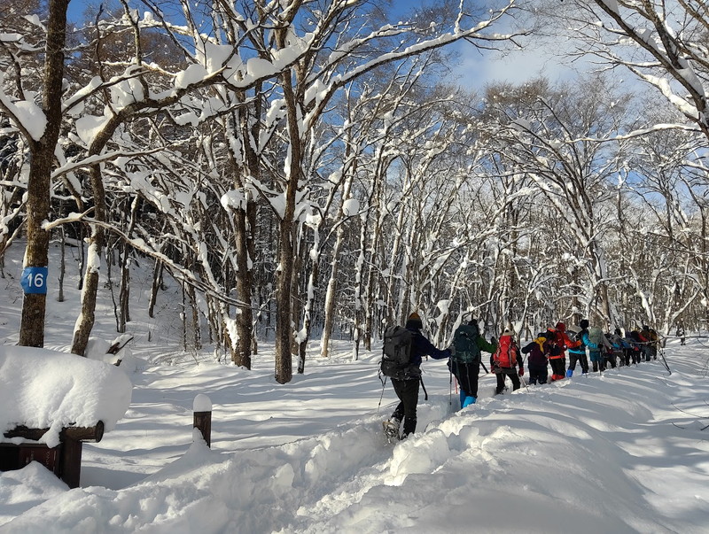 スノーハイク用の「クマのマークのフラッグ(番号付)」に沿って歩きます。