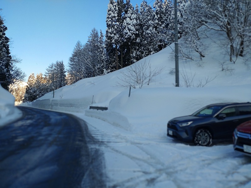 1.プチ雪の大谷が路肩にできつつある国道157号線を走り、おいの水谷駐車場へ到着。