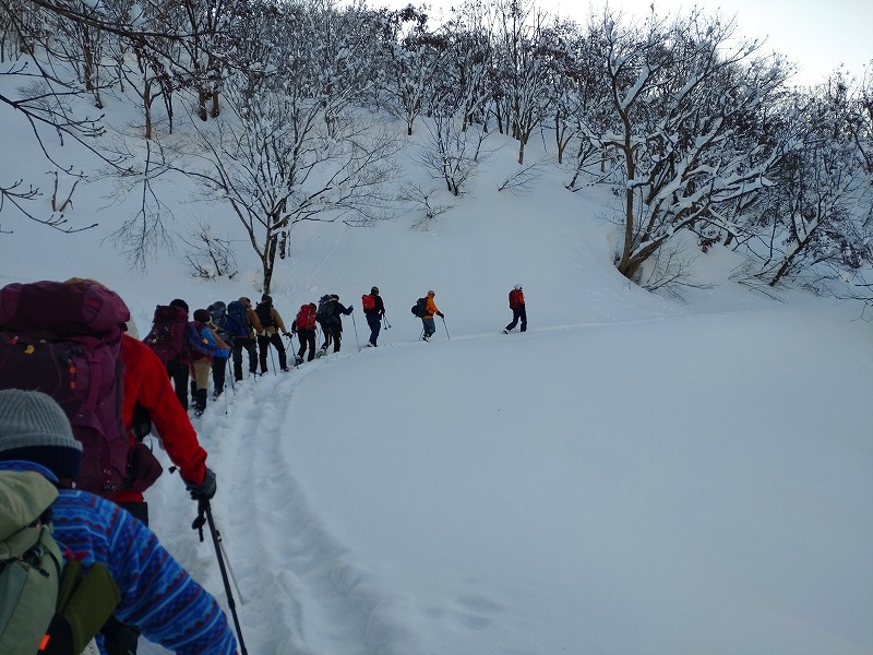 ① 先頭をいく山スキー班
