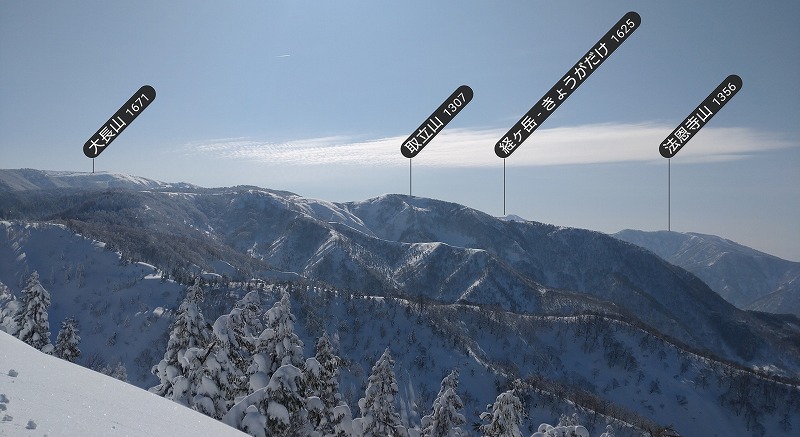 9.大日山(だいにちさん)1368mの素晴らしい展望。深田久弥が江沼アルプスと名付けるのも頷ける山容です。