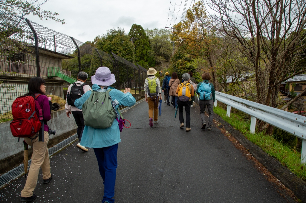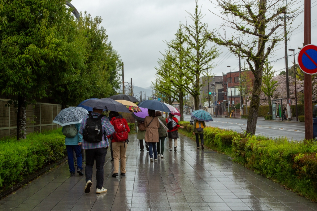 花園駅到着時、しとしとと雨が降っていました。皆さん傘をさして出発です。