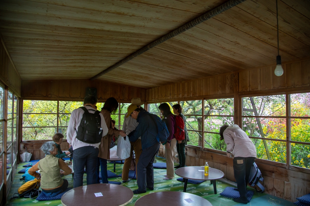 沢山歩いたので、お腹はペコペコです。原谷苑さんのご厚意で、席を準備して頂きました。お花に囲まれながらお昼ご飯です。