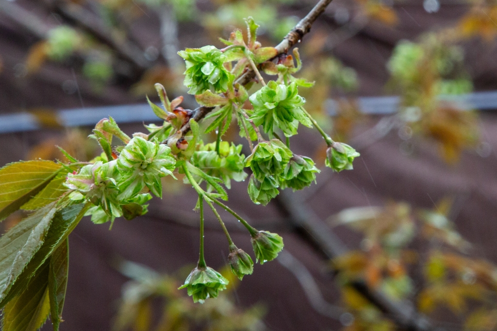 緑色の花を咲かせる八重桜、「御衣黄」を見つけました。珍しいお花を見られてラッキーです。
