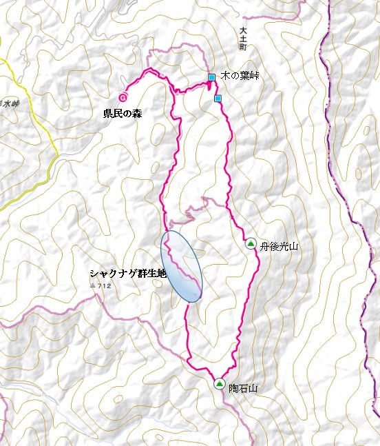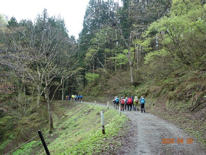 集合7:00-山中県民の森P8:00~8:30~キャンプ場~林道-登山口9:50-陶石山頂上11:50~12:30(昼食)-舟後光山13:27-木の葉峠14:50ー県民の森15:30~15:50(解散)