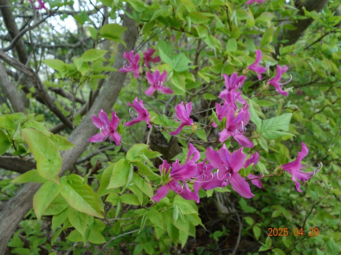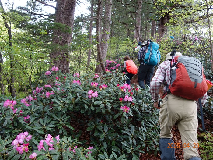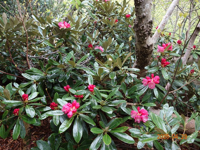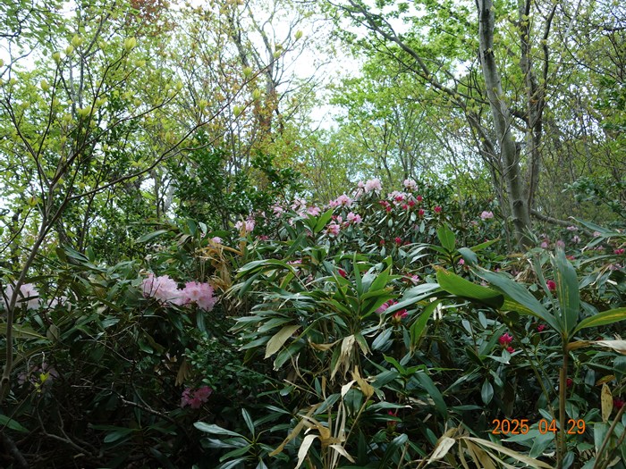 キャンプ場は本日(4/29)が開園。今年のシャクナゲは開花が遅れぎみで、咲き始めの良いタイミングの例会になりました