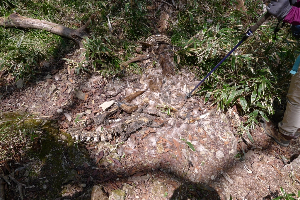 シカの死骸がここにも。一行の中の動物学の先生が解説する。