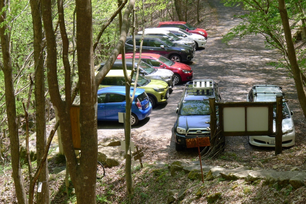 登山口に戻ると、車の数は10台に増えていた。名古屋、大阪ナンバーが多かった。 FIN