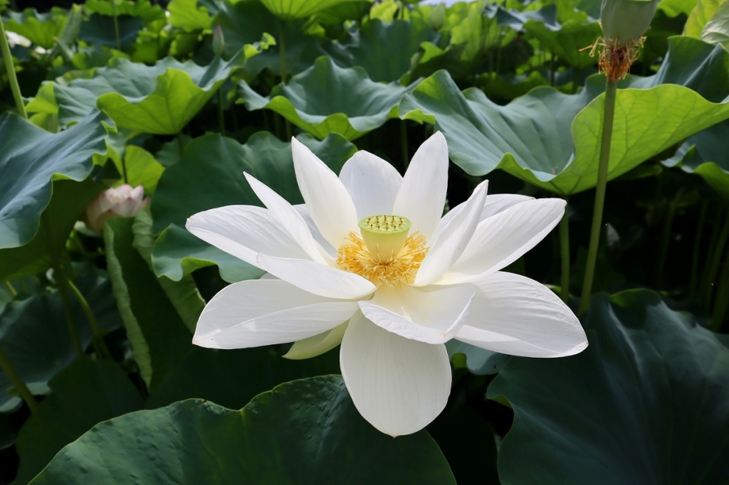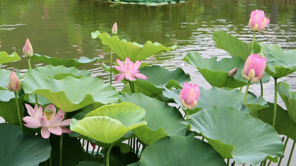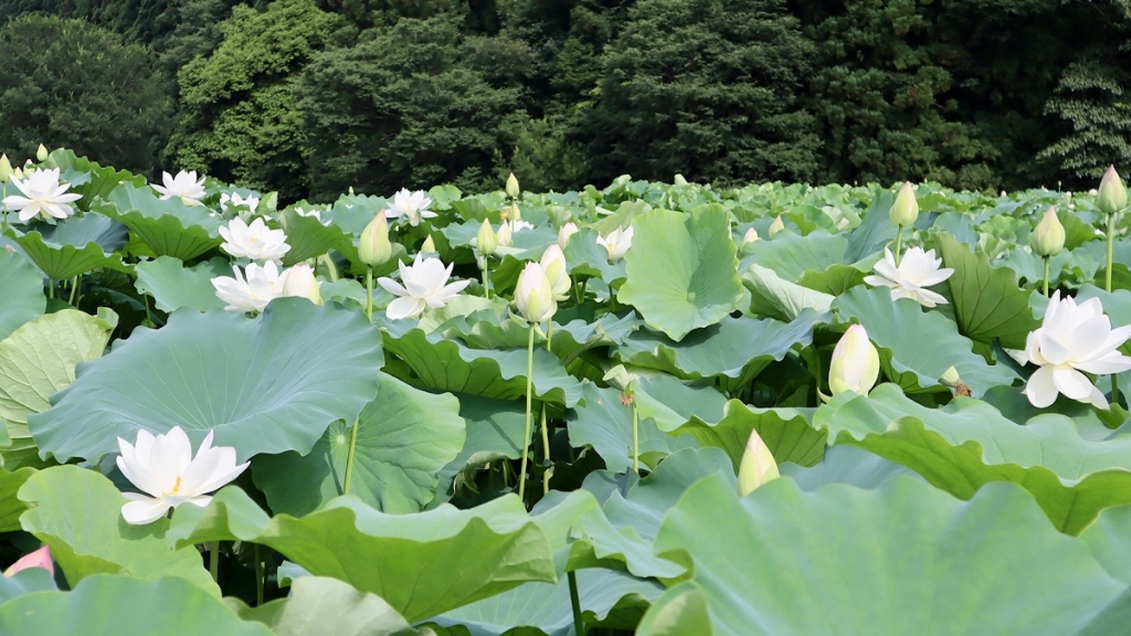 大賀蓮(おおがはす):千葉県検見川(けみがわ)で2000年前の地層から種を見付けて発芽・開花させた、世界最古の花はす。古代の花はすを現代に蘇らせることに成功した、花はす研究の第一人者である大賀一郎博士の名を取って「大賀蓮」と名付けられたそう。