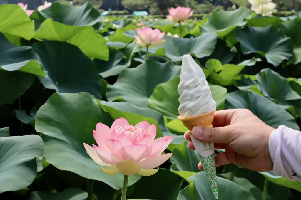 美人さんな花はすと。はすソフトクリームは甘さ控えめで後味さっぱり。とっても美味しかったです。花はすの風味は...?