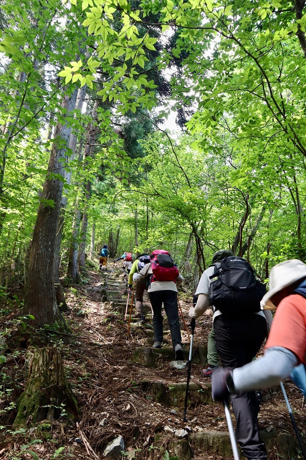 楽しみにしていた花はすは想像を上回る圧巻の咲きっぷり!今年は当たり年との声も。たっぷり散策時間を取ってくれたおかげで、心ゆくまで園内を散策できました。ご当地ソフト・はすソフトクリームで火照った身体を冷やしたら杣山登山開始です。続く急登・はしごや岩場もありますが、よく整備されており、国の史跡として大切に守られているお山なのだと解ります。登山後は地元グルメ。今庄そばは大根おろしでさっぱり沁みる美味しさでした。帰り道には今庄宿にも寄って頂きました。当時の風情が伺える宿場町の面影に先人が過ごした時を感じ、ここに関わる歴史を少しだけ学ぶことができました。