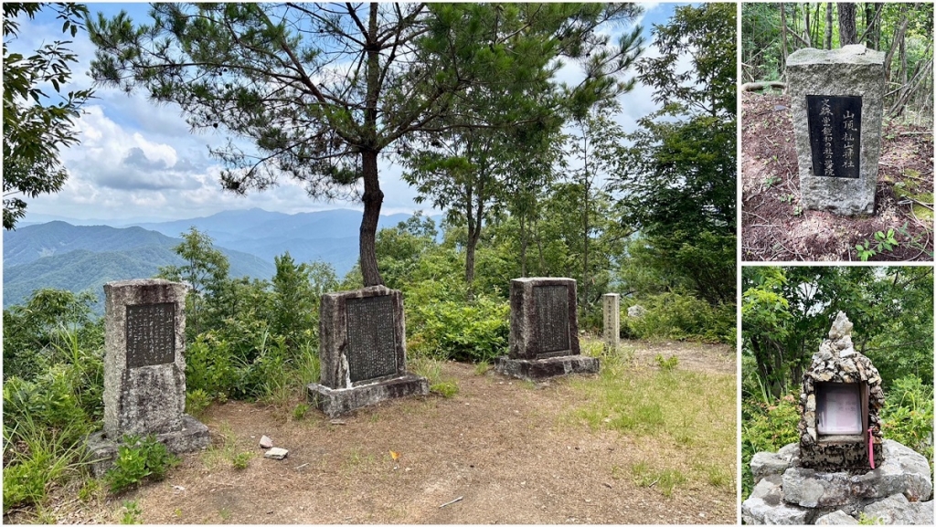 山頂は杣山城の本丸であり、城跡を示す石碑が並んでいます。