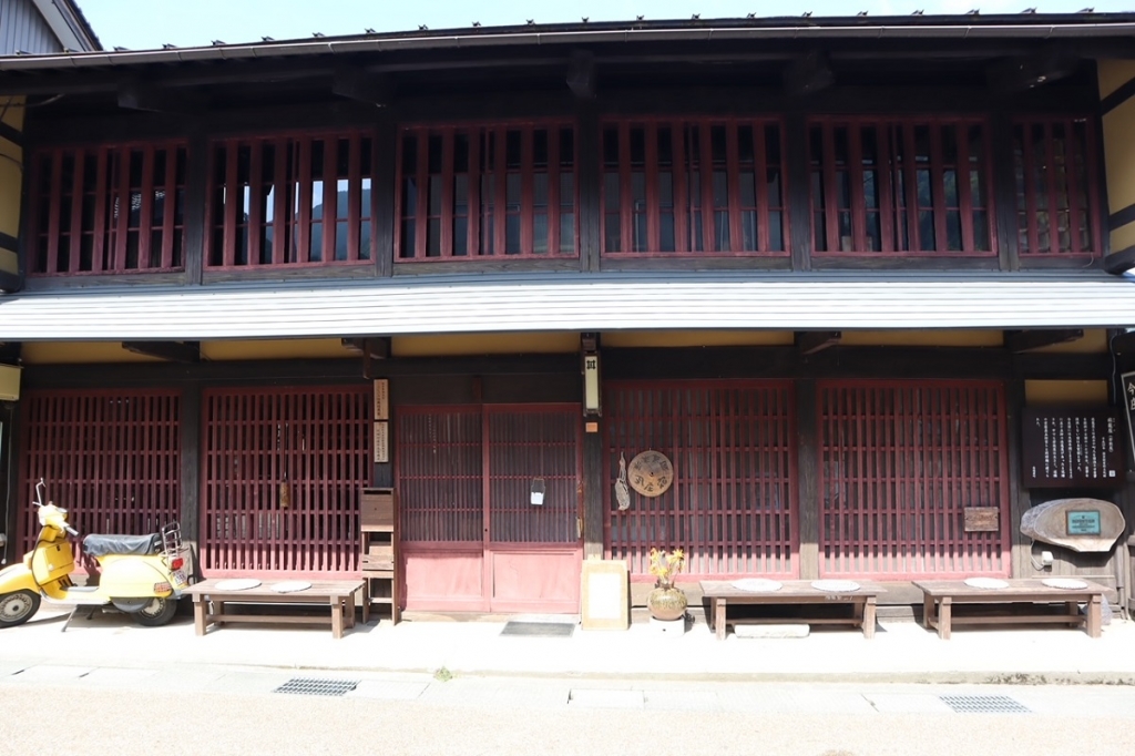旅籠若狭屋:国登録有形文化財。天保年間には55軒の旅籠があり、こちらの旅籠はその中でも大きい旅籠だったそう。趣のあるベンガラ調の格子。