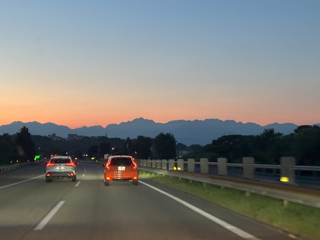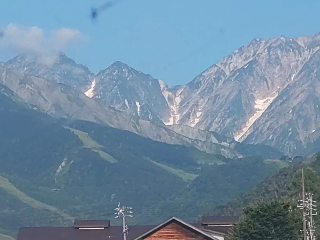 朝日が昇る中、白馬村に到着。快晴に近い天気でコンビニの駐車場からは今回歩く不帰の嶮もくっきりと見える。夕方までもってくれよと願いつつ、ジャンボタクシーに乗り継ぎ猿倉荘に到着。