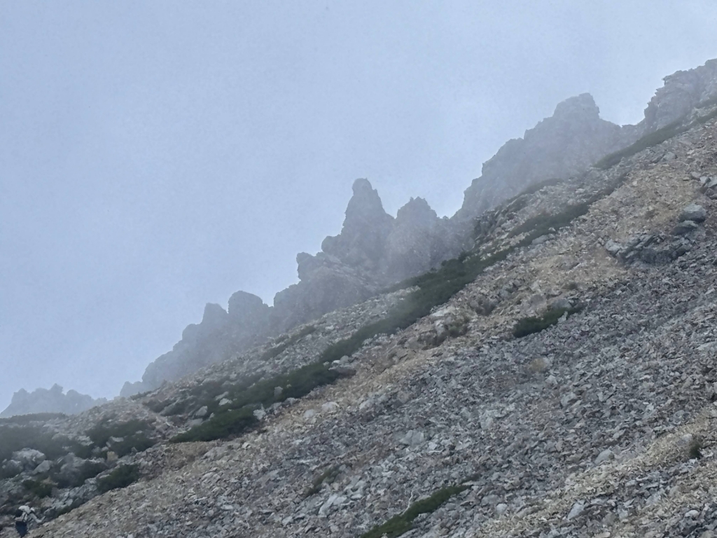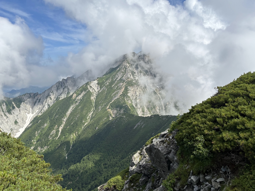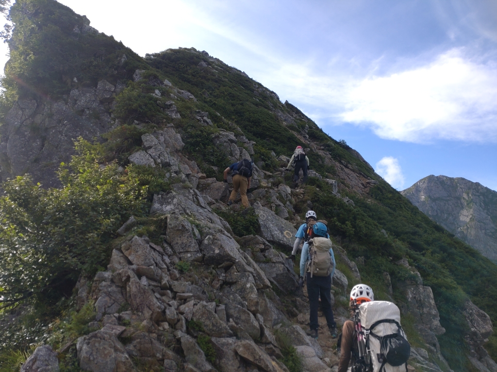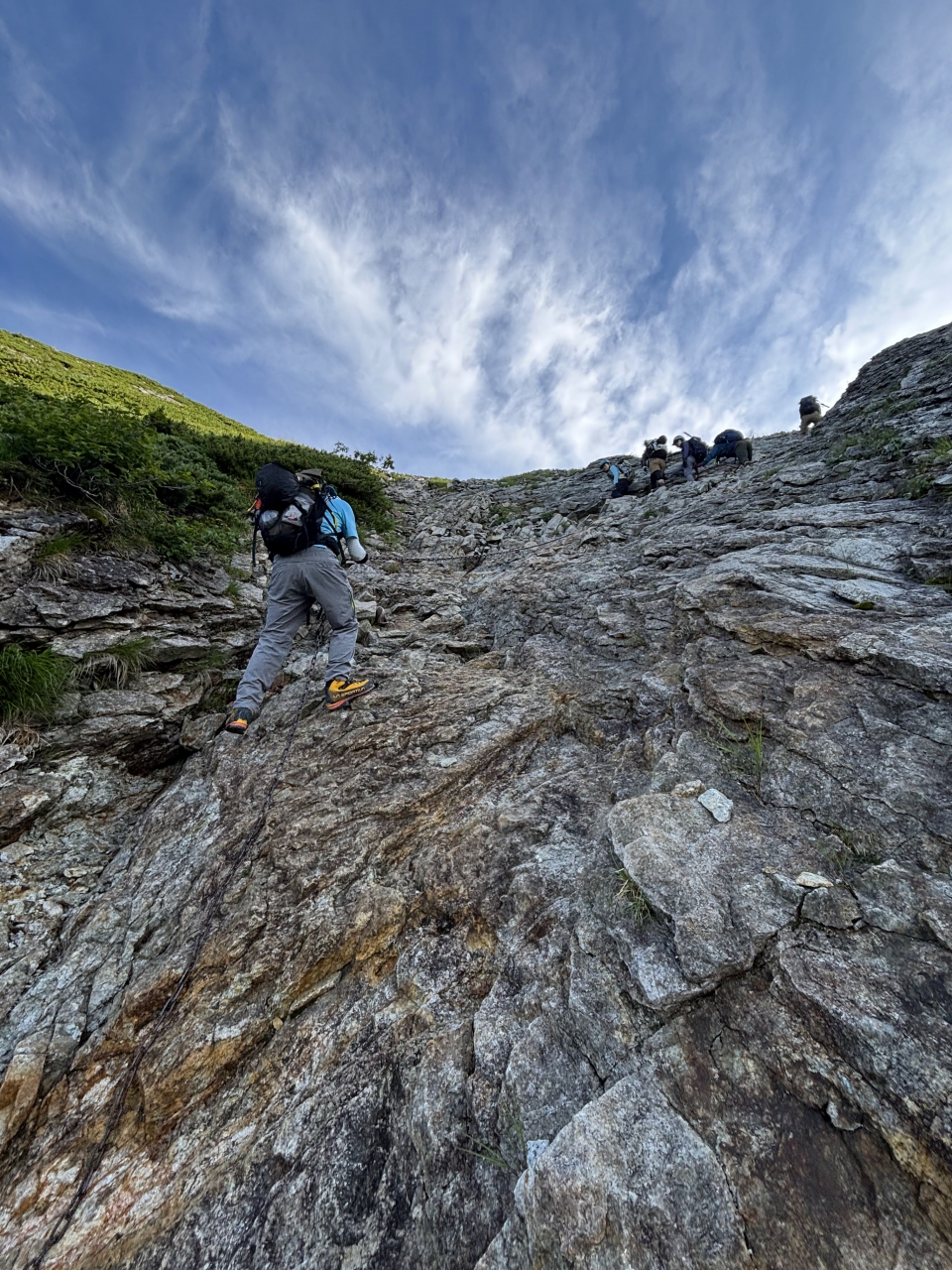 今回の山行の1日の行動は歩行距離が10km程度ですが、累積標高差は2000mを時間厳守で歩くものでした。雷雲との遭遇はありました。大雪渓での落石、Ⅱ峰北峰山頂手前の大きな浮石と最悪事故となり兼ねない現場にも遭遇しましたが、これは運なのかも知れないと思うと気が引き締まります。
