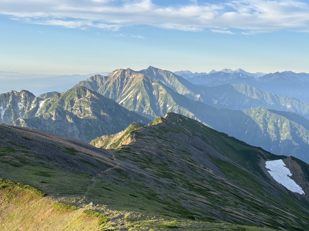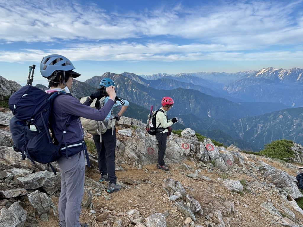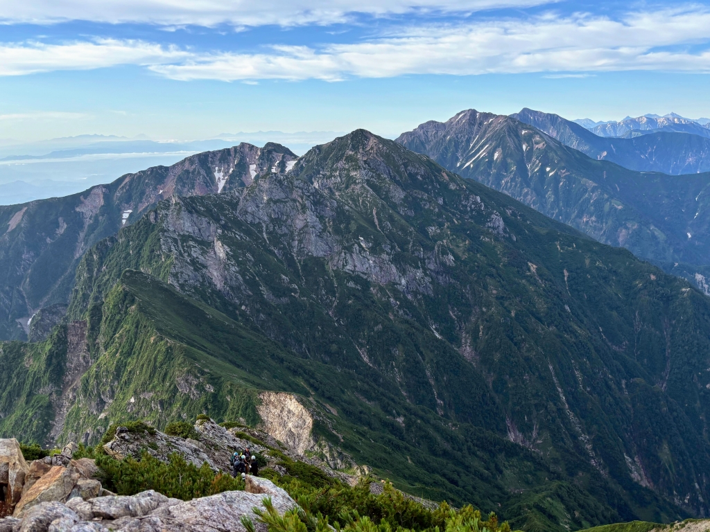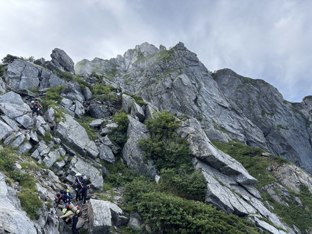 今回の山行の1日の行動は歩行距離が10km程度ですが、累積標高差は2000mを時間厳守で歩くものでした。雷雲との遭遇はありました。大雪渓での落石、Ⅱ峰北峰山頂手前の大きな浮石と最悪事故となり兼ねない現場にも遭遇しましたが、これは運なのかも知れないと思うと気が引き締まります。